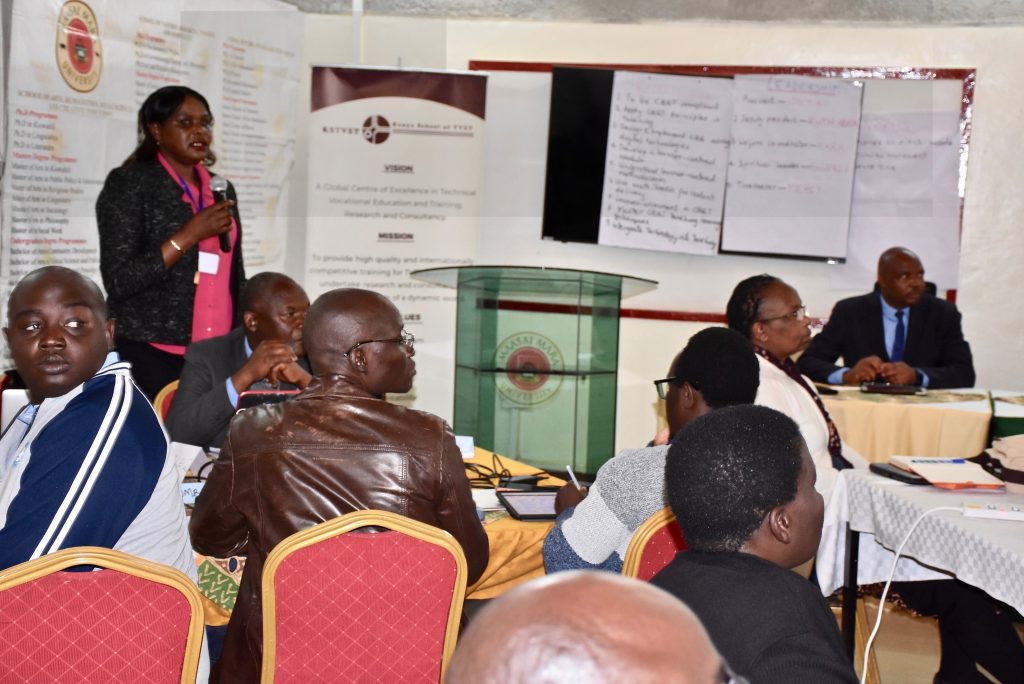 The training focuses on key institutional priorities, including realigning degree programmes to CBE competencies, shifting from lecture-heavy teaching to competency-based learning that responds to industry needs, and building faculty capacity to support the transition from the 8-4-4 Education System to a competency-based framework.